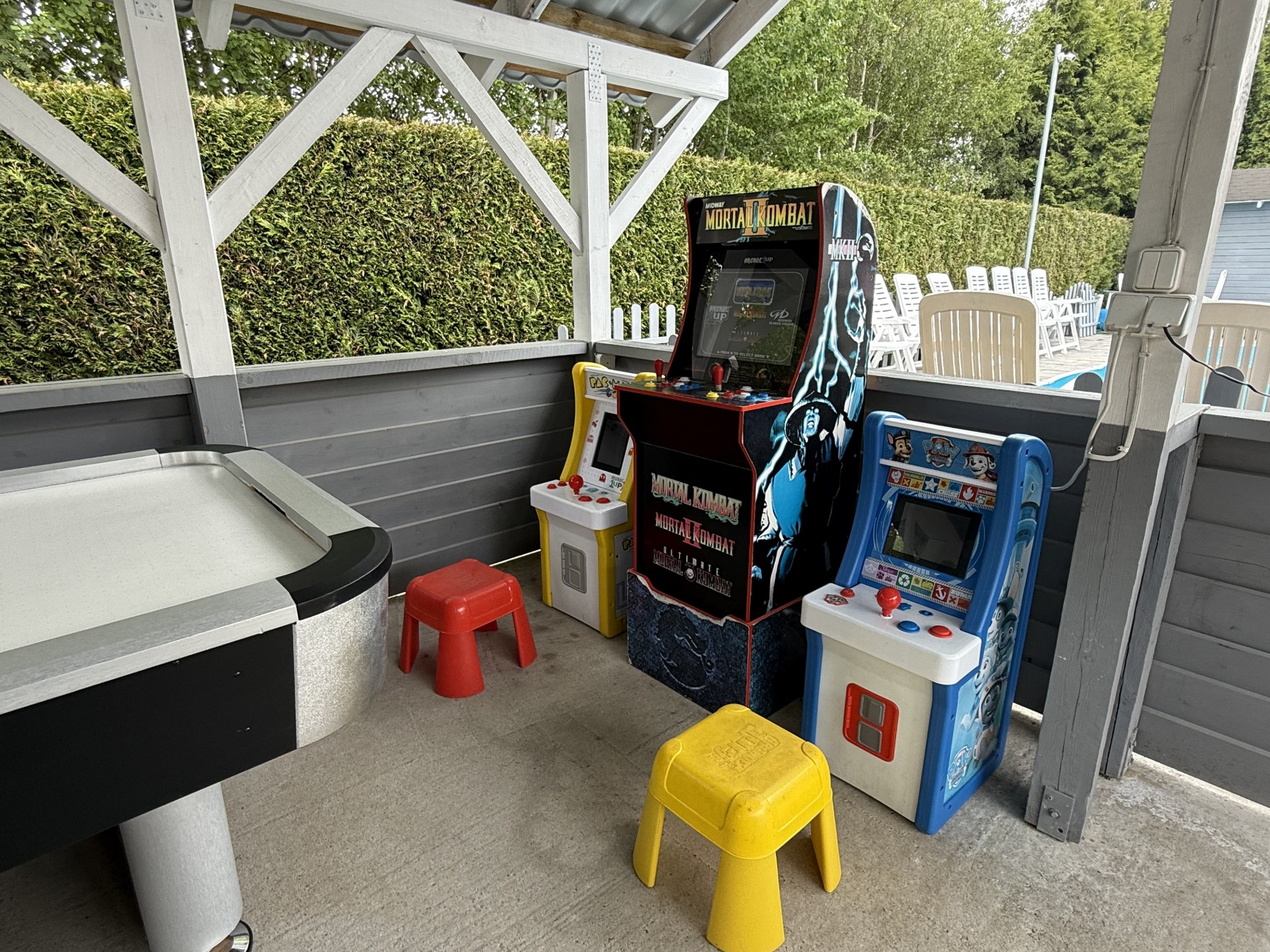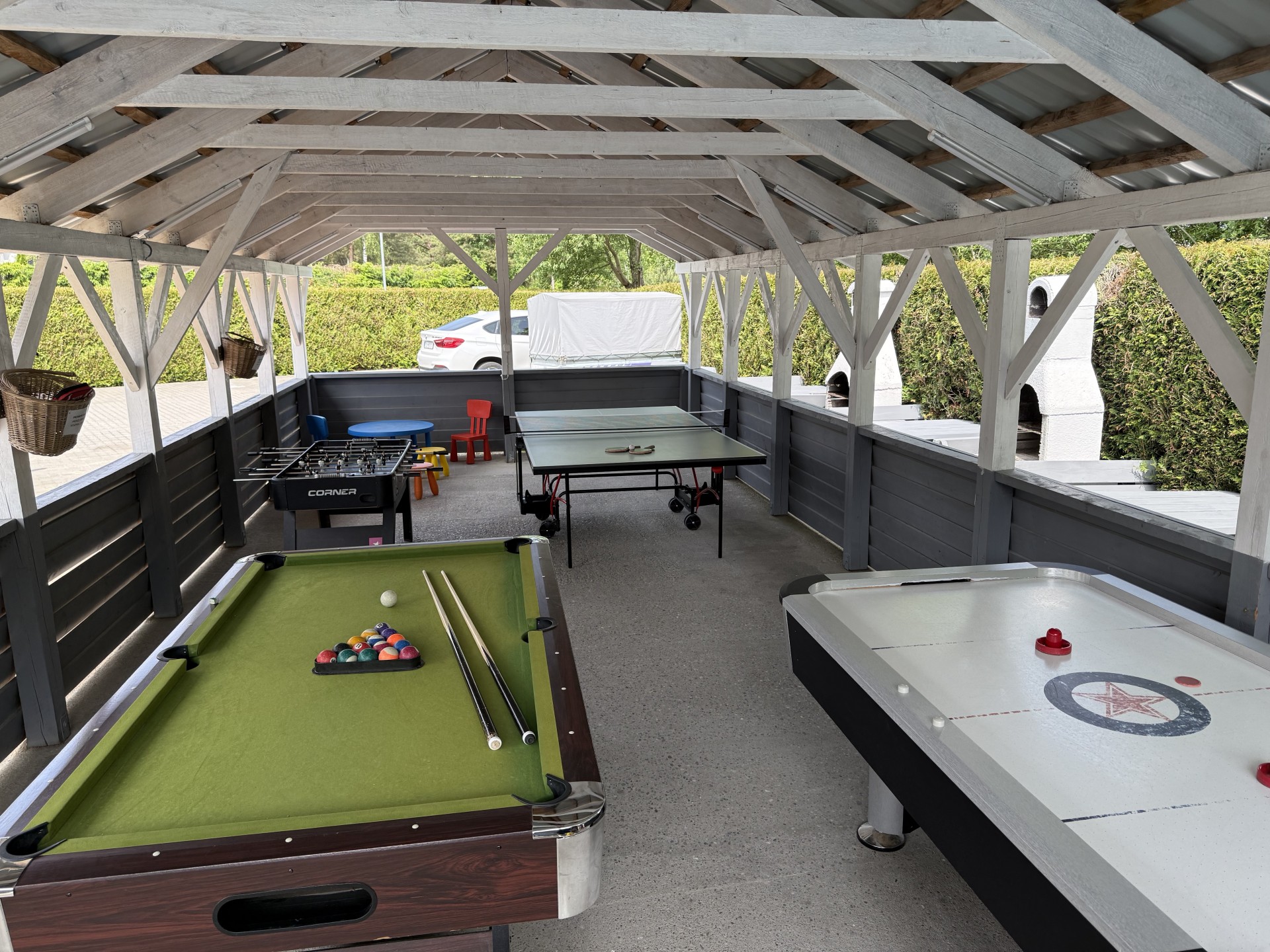 letni klub pod wiatą z grami , bilardem, piłkarzykami, cymbergajem, stołem do ping-ponga