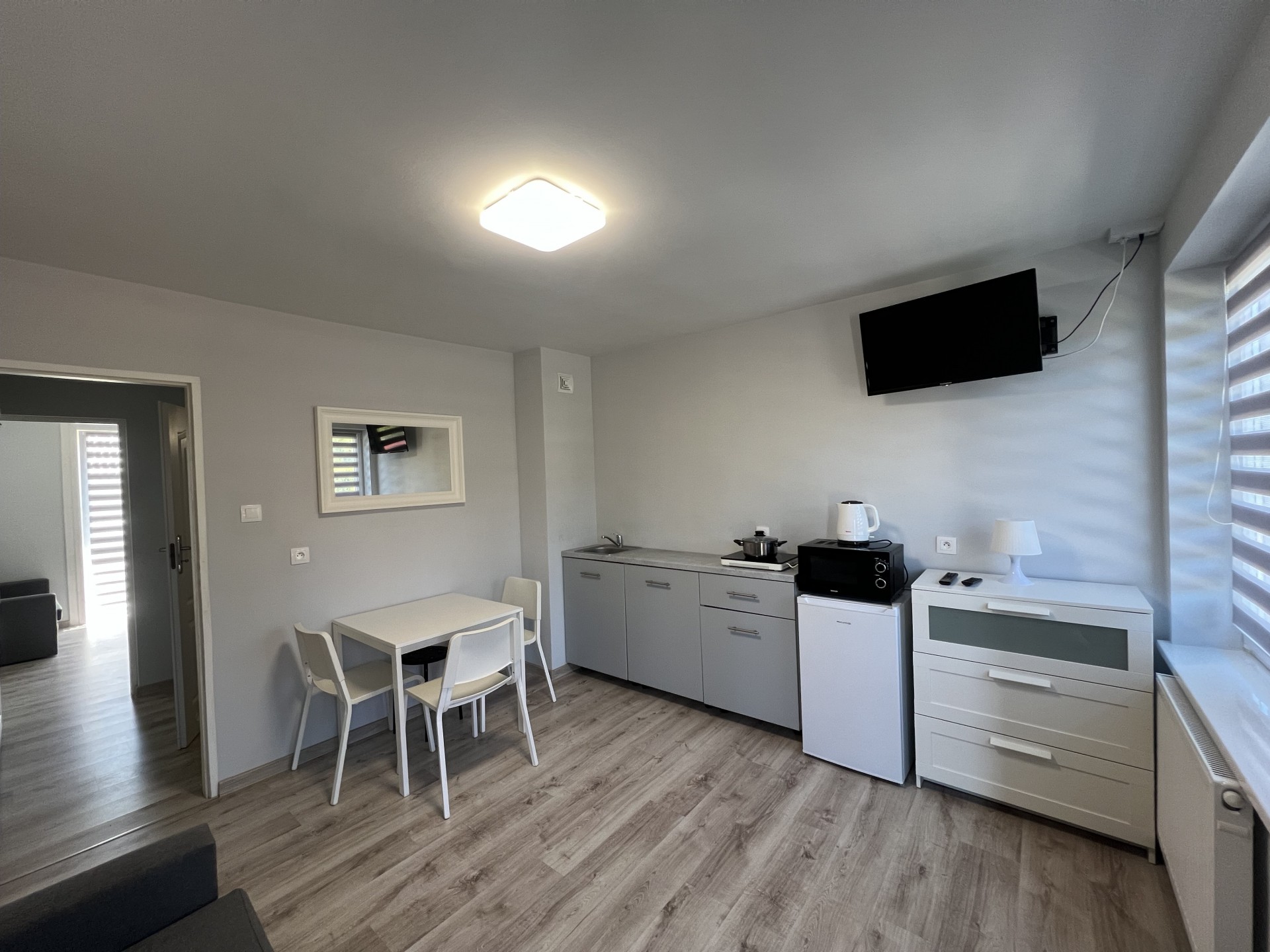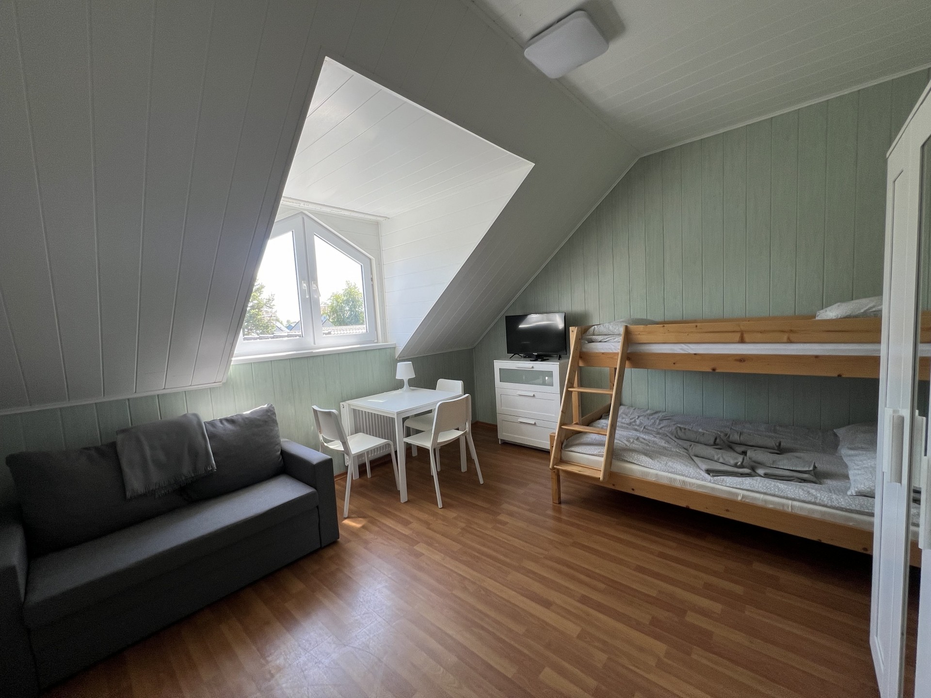 Pokoje mają powierzchnię 23 m.kw. i są max. 4 osobowe, apartamenty około 36-38 m.kw. i są max. 5 osobowe, a domki 27 m.kw. i są max 4 osobowe.